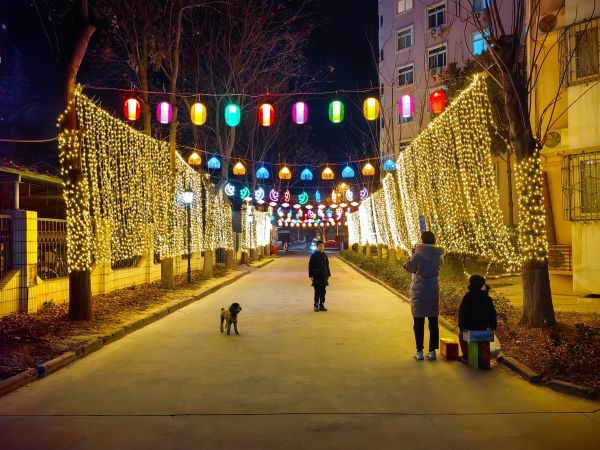 2023癸卯兔年春節(jié)即將來臨,花園小區(qū)在各色燈籠的點綴下熠熠生輝。