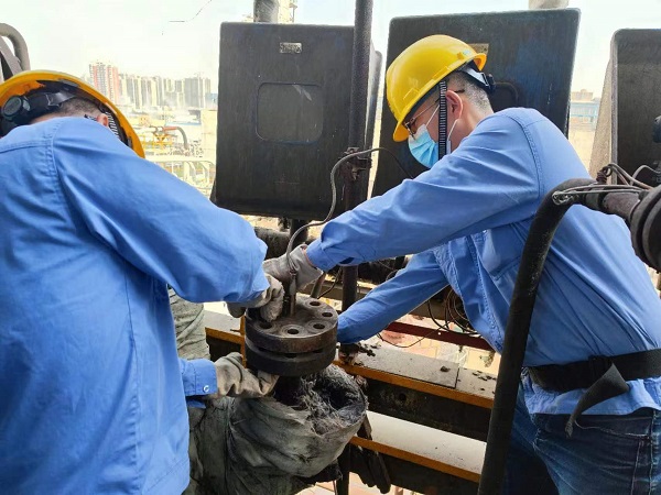 “好的,我們馬上就到。”掛斷電話,氣化合成工段的老師傅王益帶領(lǐng)著青工宋益斌拿起工具包,火速奔赴一期控制室“前線”。在與工藝人員進(jìn)行了短暫的交流,辦理好工作票后,他們來(lái)到一期氣化爐一樓。憑借豐富的工作經(jīng)驗(yàn),王益很快查明原因:主要是閥門關(guān)信號(hào)無(wú)應(yīng)答,反饋關(guān)開(kāi)關(guān)未閉合,于是果斷調(diào)整了反饋開(kāi)關(guān)位置,通信立刻恢復(fù)正常。緊接著,他們又轉(zhuǎn)戰(zhàn)“第二戰(zhàn)場(chǎng)”—2號(hào)氣化爐中心氧流量。經(jīng)全方位檢查確認(rèn),判斷是由于導(dǎo)壓管內(nèi)有積液導(dǎo)致流量指示不準(zhǔn),排出導(dǎo)壓管內(nèi)積液后,流量指示恢復(fù)正常。處理完緊急情況,他們開(kāi)始對(duì)四號(hào)煤漿管線進(jìn)行檢修。榔頭、敲擊扳手齊裝上陣,二人配合默契,四號(hào)煤漿管線導(dǎo)壓管的法蘭拆除工作很快完成,現(xiàn)場(chǎng)認(rèn)真檢查確認(rèn)膜盒無(wú)破損、漏油情況。“接下來(lái)就等工藝疏通取壓孔后再進(jìn)行法蘭的回裝工作了”,經(jīng)歷數(shù)場(chǎng)“苦戰(zhàn)”,兩人早已疲憊不堪。